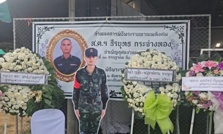 วันที่ 2 สิงหาคม 2568 – ภายในวัดบ้านยางโป่งสะเดา ตำบลตาจง อำเภอละหานทราย จังหวัดบุรีรัมย์ บรรยากาศเต็มไปด้วยความโศกเศร้า เมื่อครอบครัว ญาติพี่น้อง เพื่อนบ้าน รวมถึงกำลังพลจากหน่วยต้นสังกัด เดินทางมาร่วมพิธีฌาปนกิจศพของ ส.ต.ธีรยุทธ กระจ่างทอง ทหารกล้าผู้เสียชีวิตจากเหตุปะทะกับกองกำลังทหารกัมพูชา บริเวณชายแดนไทย-กัมพูชา จังหวัดศรีสะเกษ เมื่อวันที่ 29 กรกฎาคมที่ผ่านมา