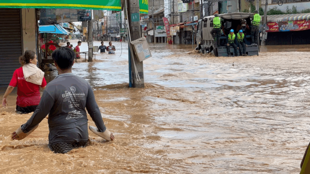 ตามท้องถนนพบสิ่งของและทรัพย์สินจำนวนมากลอยไปตามกระแสน้ำ รถจักรยานยนต์และอุปกรณ์การค้าของชาวบ้านถูกน้ำพัดกระจาย บางจุดน้ำเชี่ยวกรากจนเด็กและสตรีไม่สามารถเดินฝ่ากระแสน้ำได้ ต้องอาศัยผู้ชายร่างกายแข็งแรงช่วยประคองเพื่อความปลอดภัย